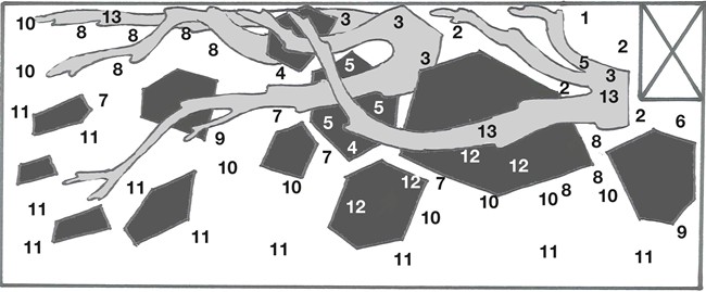Rất nhiều loại cây được pha trộn với mục đích tạo ra sự ấn tượng với những hình thái khác nhau khi chúng phát triển, đa dạng loại lá và màu sắc. Marsilea, Eleocharis, Staurogyne, Ranunculus và Rotala ‘Bonsai’ được trồng ở giữa trong khi rêu, Microsorum và Anubias sẽ xen lẫn giữa Rotala ‘green’ và Limnophila Hippuridoides để có khoảng trồng bên góc